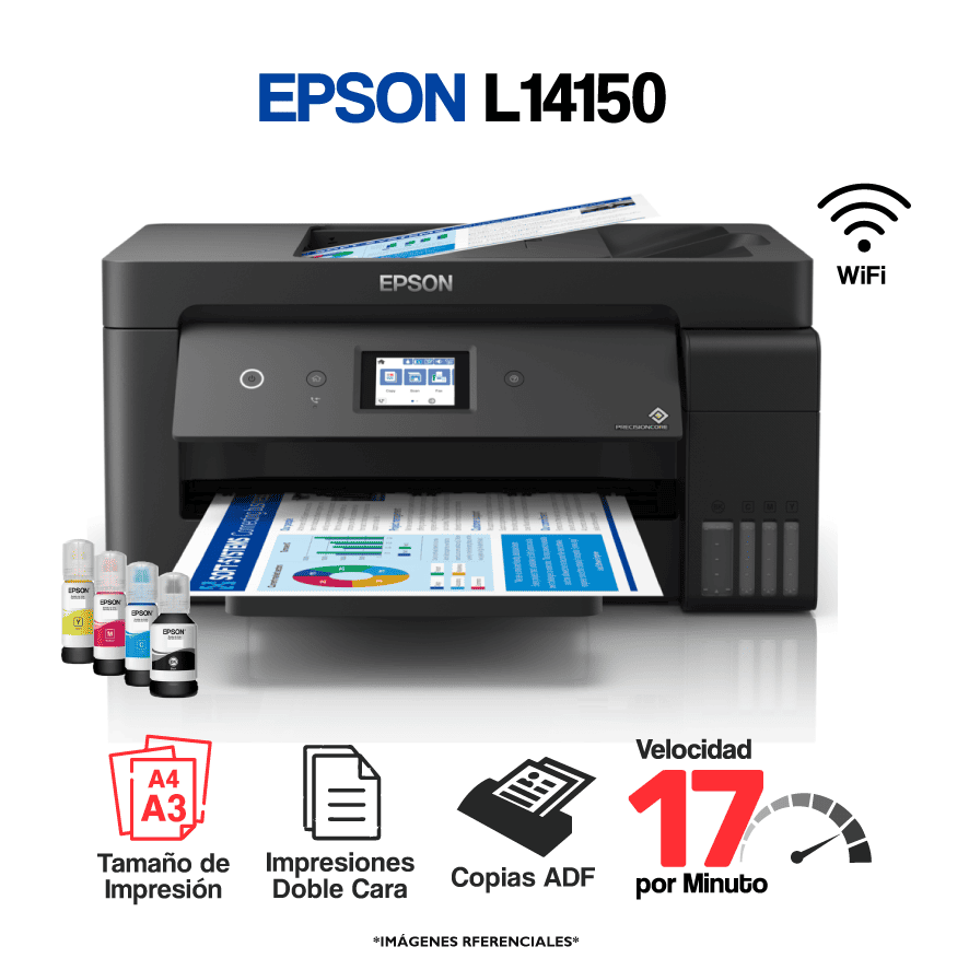 Impresora inalámbrica multifuncional 4 en 1 Epson EcoTank® L14150 con impresión 100% sin cartuchos hasta A3+