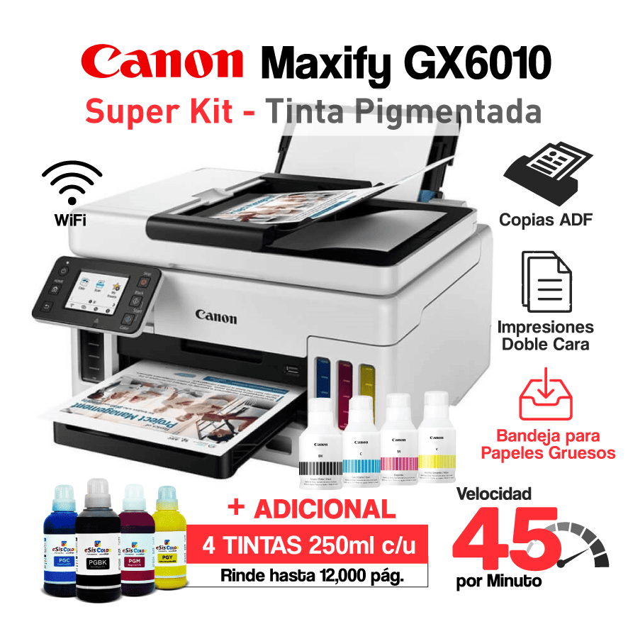 Impresora Canon MAXIFY GX 6010 + SuperKit Tintas Pigmentadas