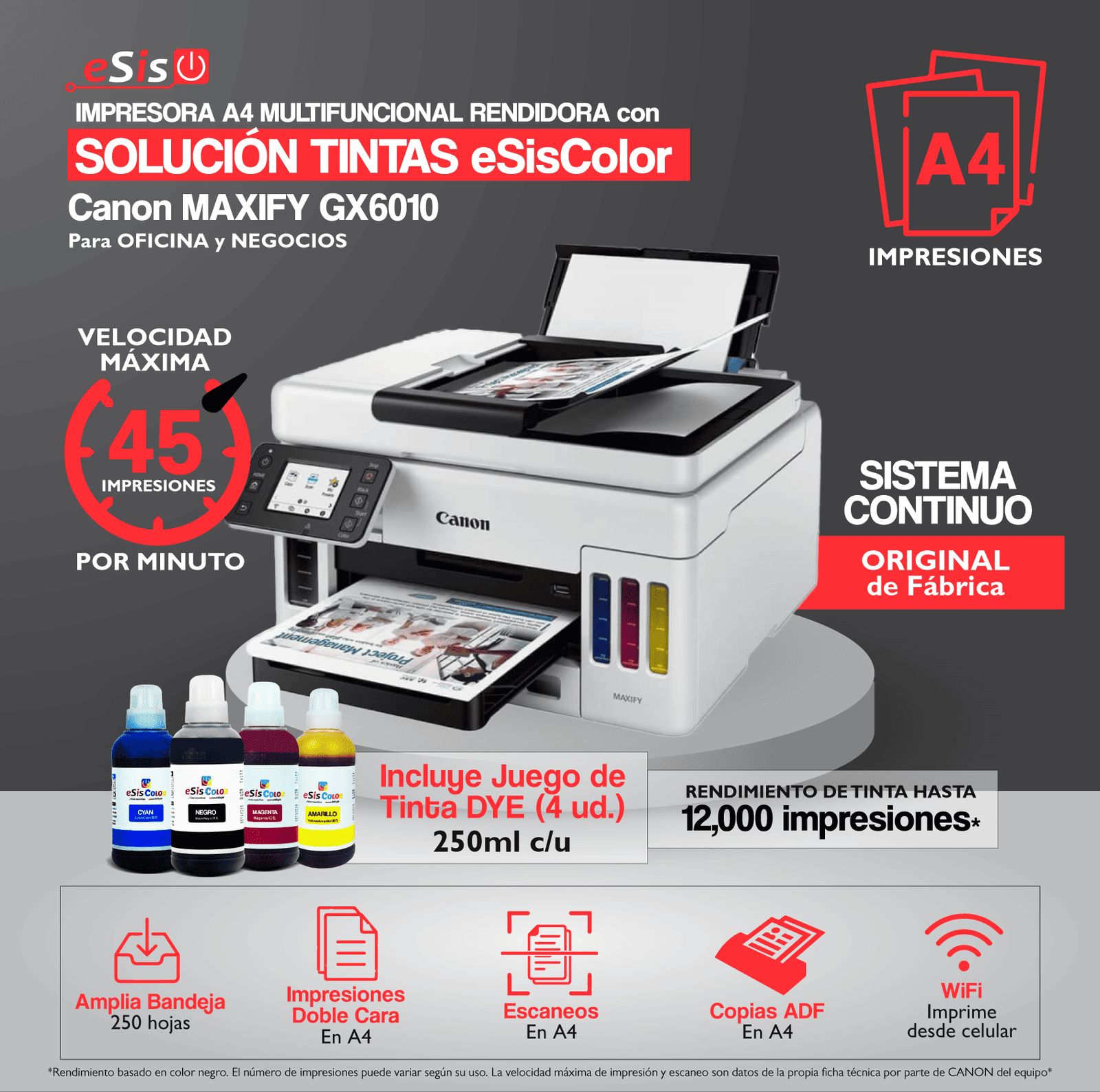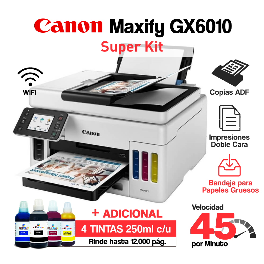 Impresora Canon MAXIFY GX 6010 + Super Kit Tintas