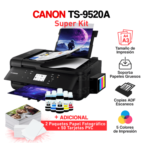 S/1,150.00Impresora CANON TS-9520a (Sistema Continuo) + Super Kit Fotográfico