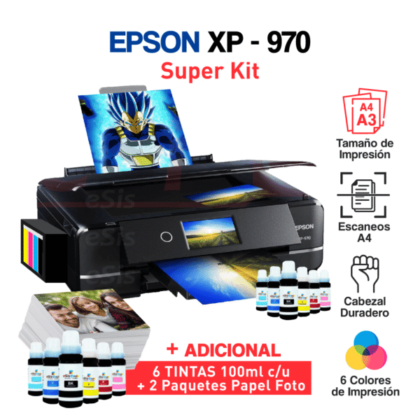 S/1,399.00Impresora EPSON XP-970 (Sistema Continuo) + Super Kit Fotográfico