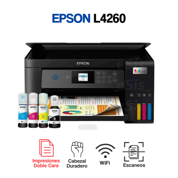 - PROMOCIÓN: Incluye Tintas eSiscolor 4 unidades de 250ml c/u (rinde hasta 15,000 impresiones)