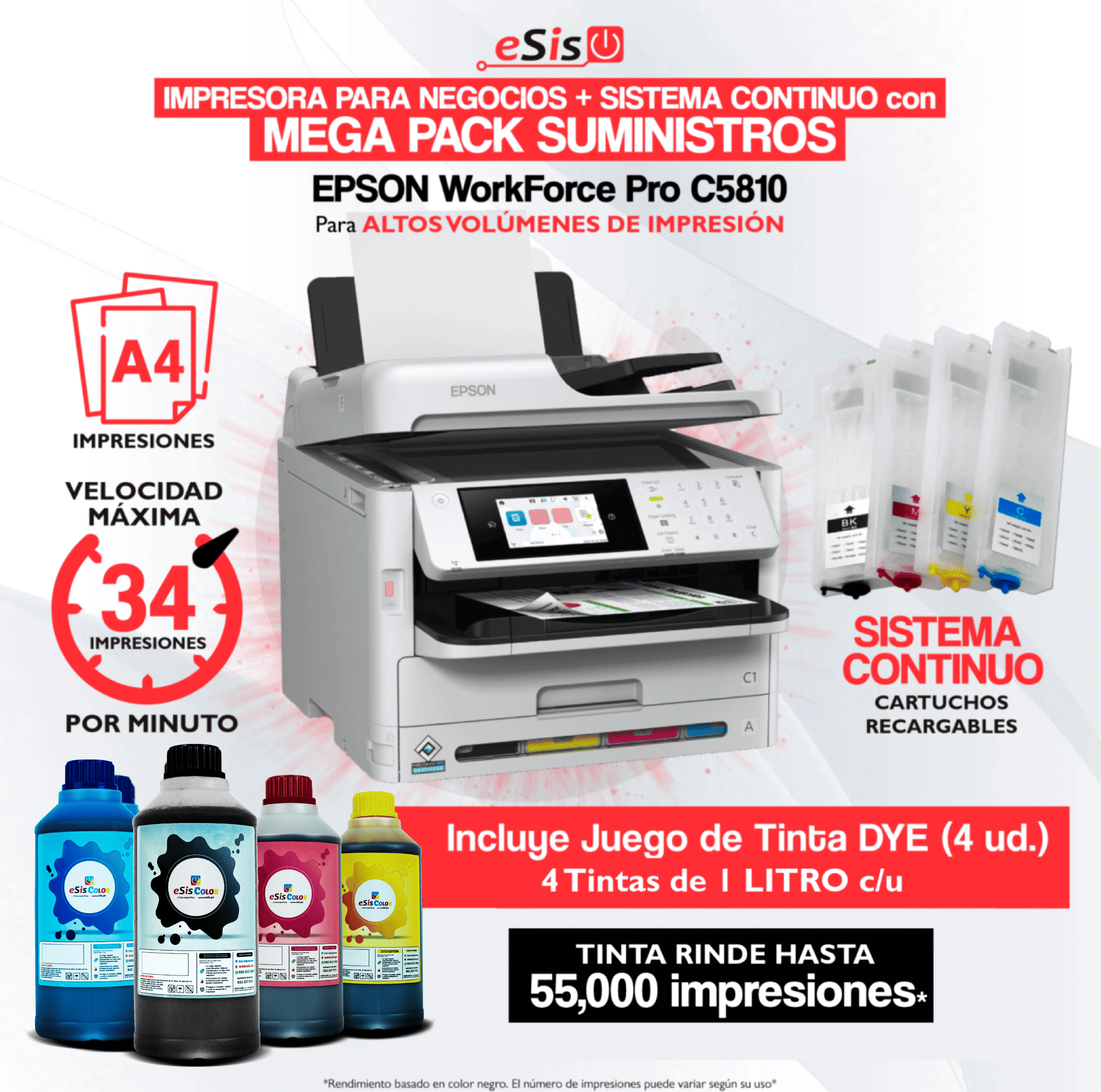 - Impresora Epson WorkForce Pro C5810 + Sistema Continuo Cartuchos Recargables