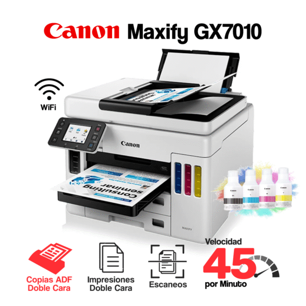 - LA IMPRESORA VELOZ DE ALTO RENDIMIENTO y capacidad, facilita las copia y escaneo con su (ADF) alimentador automático de hojas, dúplex en todas sus funciones