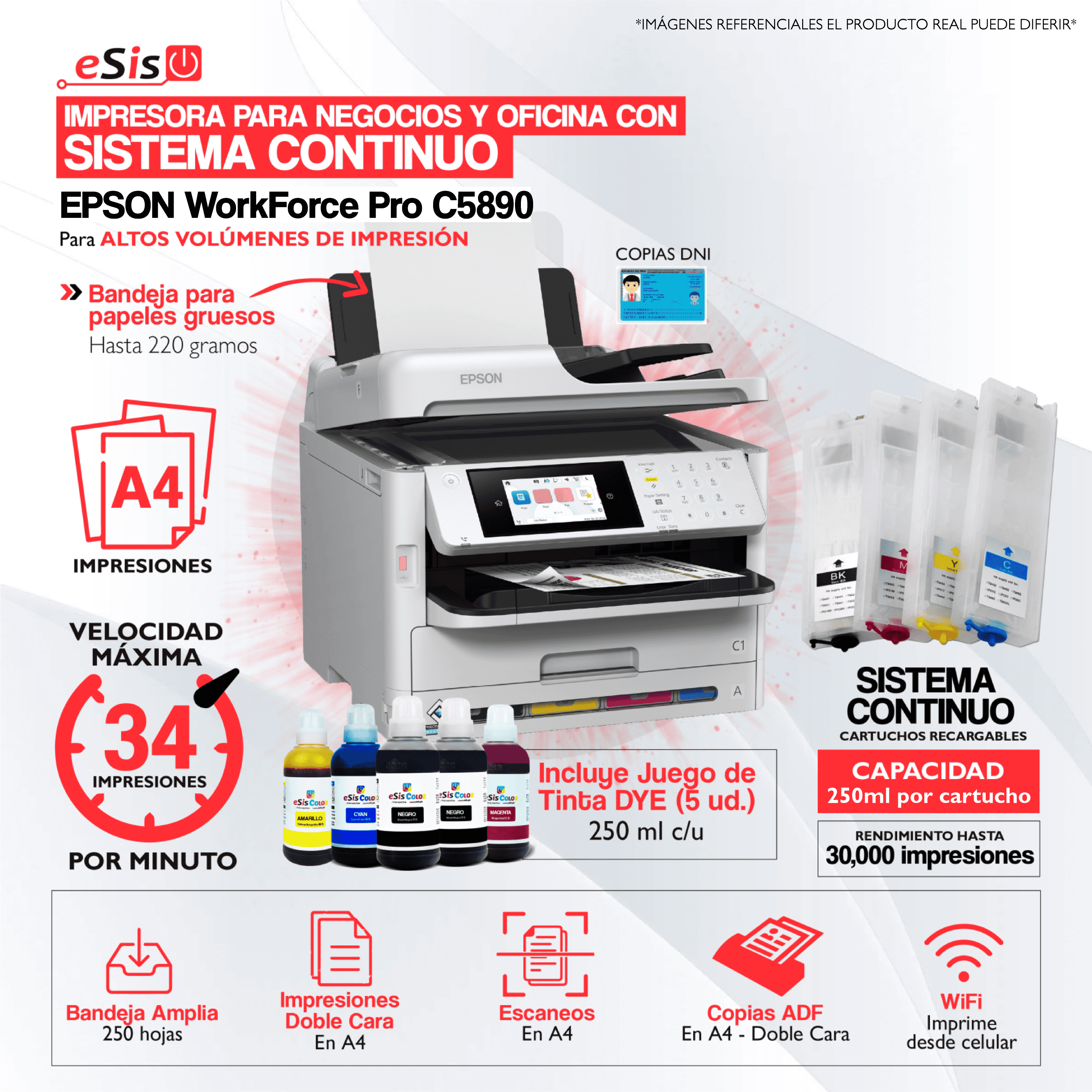 Impresora Epson WorkForce WF-C5890 + Sistema Continuo (Tinta DYE)