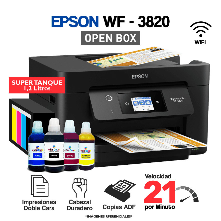 Impresora Epson WorkForce WF-3820 + Sistema Continuo SuperTanque (OPEN BOX)