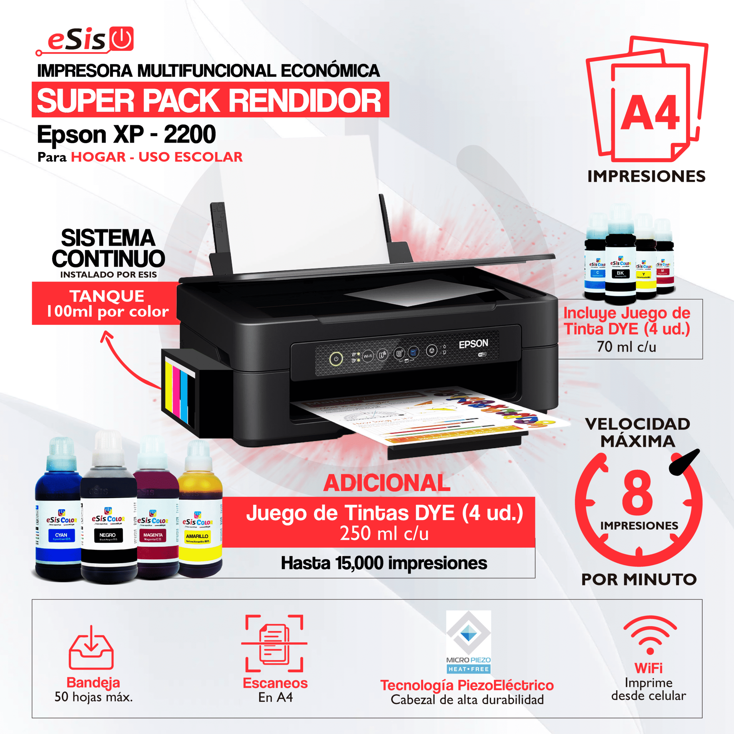 Impresora Epson XP-2200 (Sistema Continuo) – WiFi + Kit Super Pack