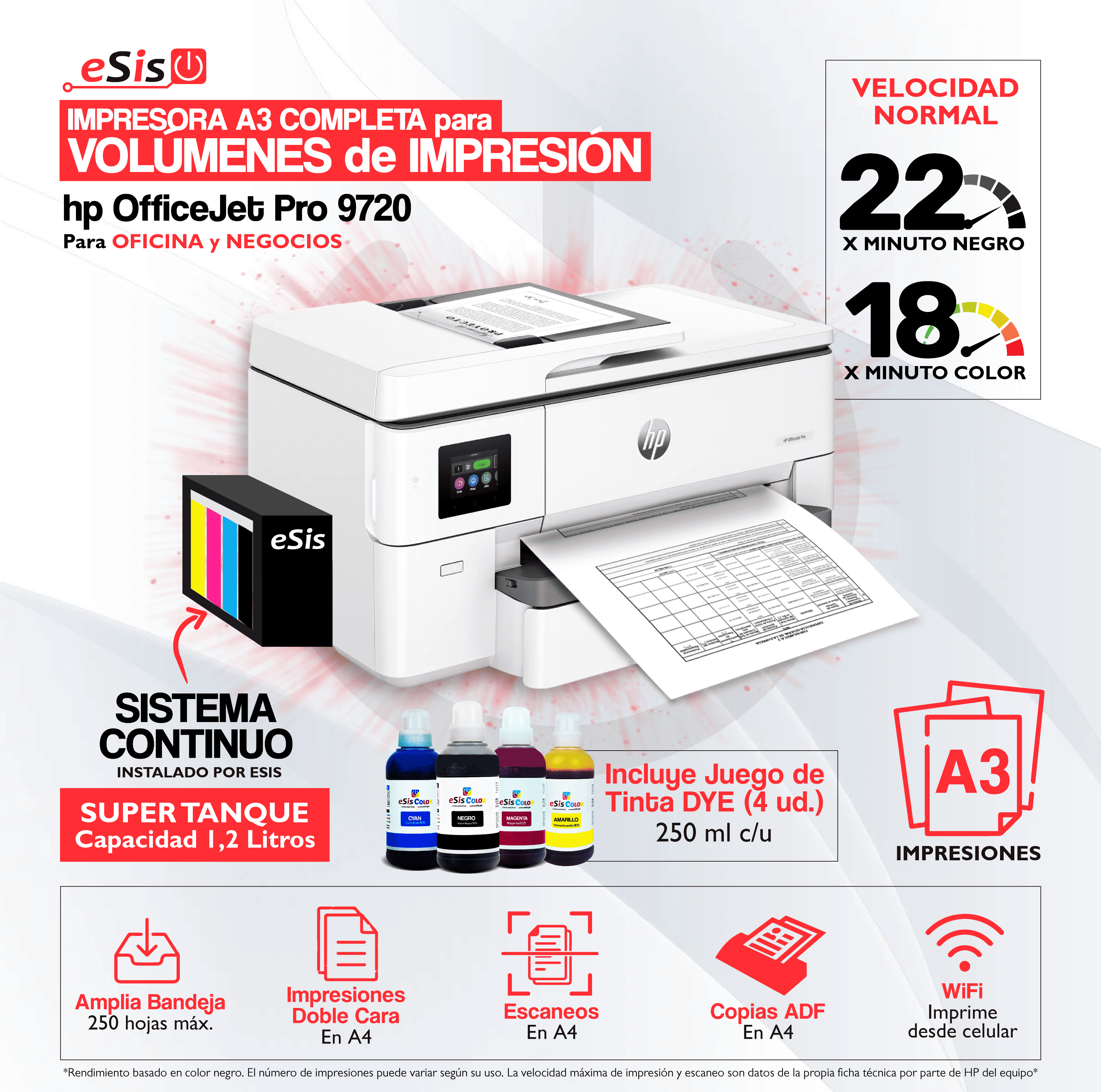 Impresora A3 HP Officejet Pro 9720 con Sistema Continuo Profesional (Adaptado)