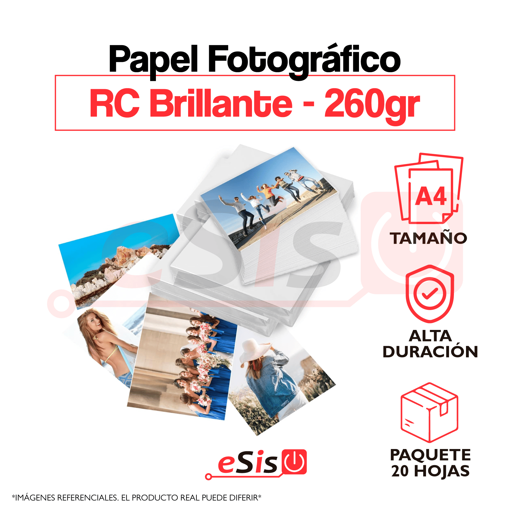 Papel Fotográfico RC BRILLANTE – Tamaño A4 260 gr – 20 hojas por paquete – Alta Duración