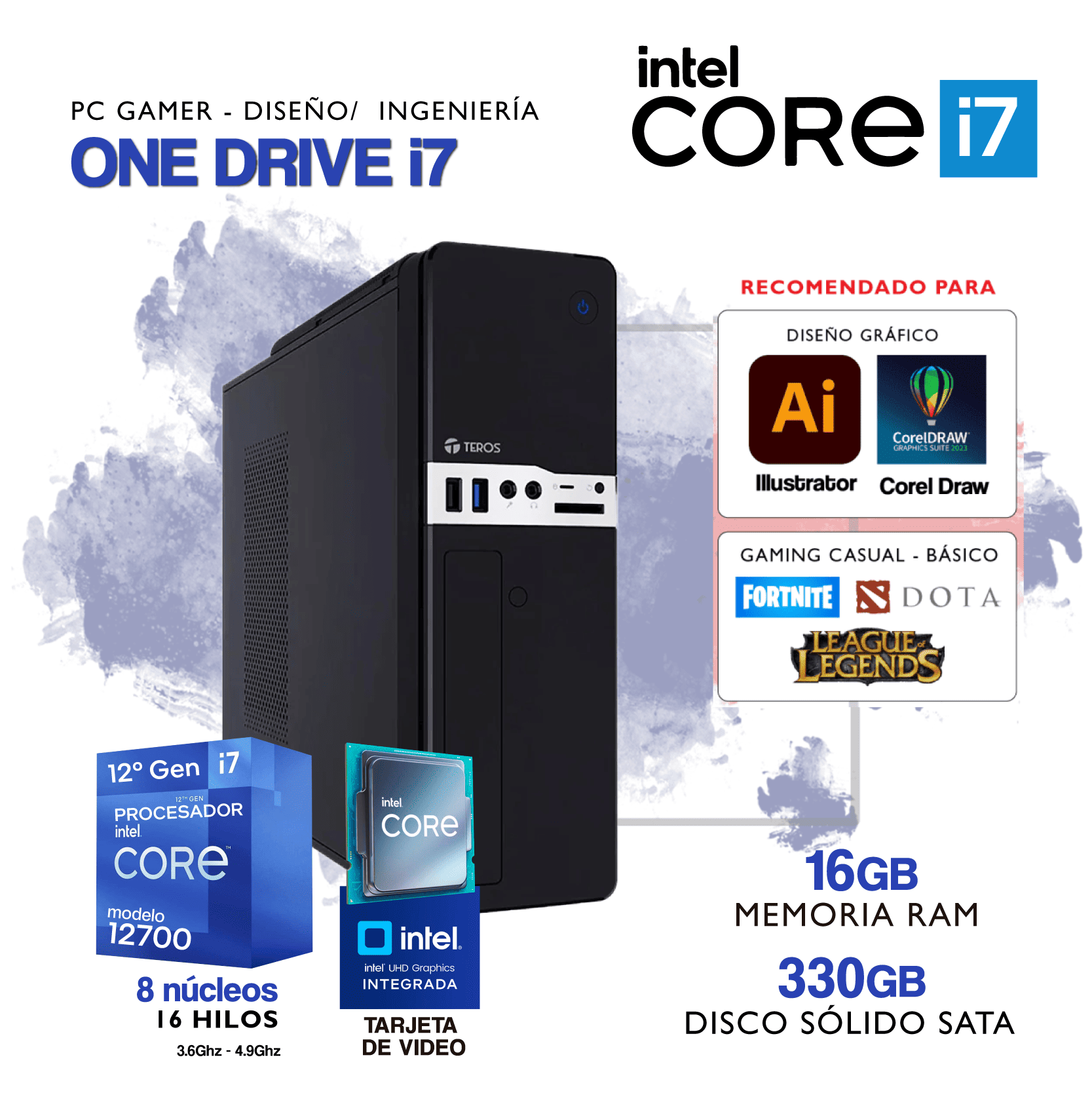 PC ONE DRIVE i7 – Intel Core i7 12700 – 12° Generación – 16Gb RAM – 330Gb SSD SATA