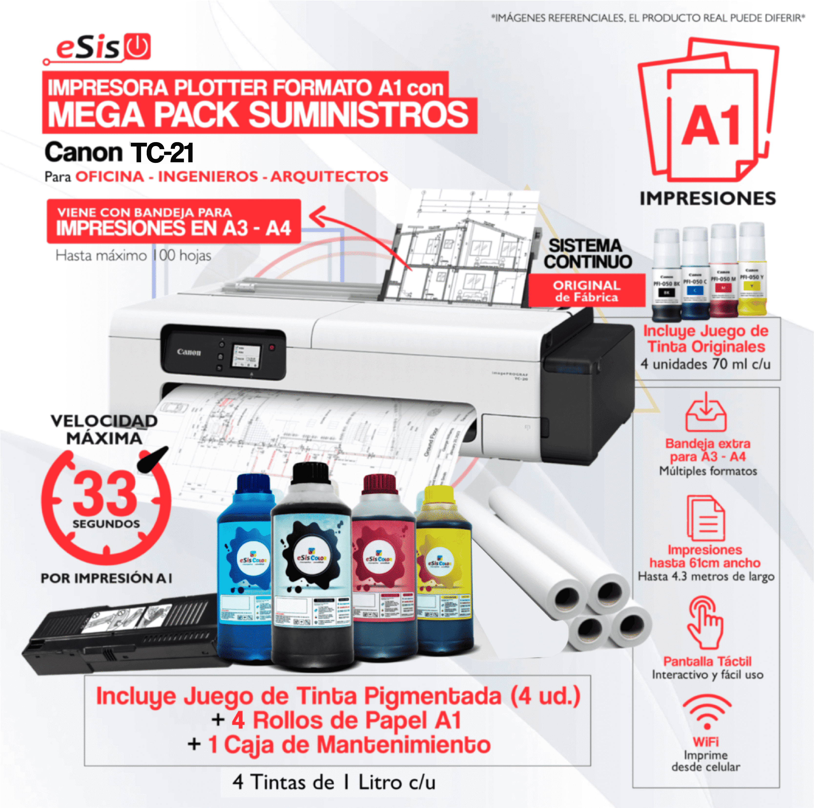 ¡Llévate tu impresora plotter TC-21 con nuestro KIT MEGA PACK! Incluye: