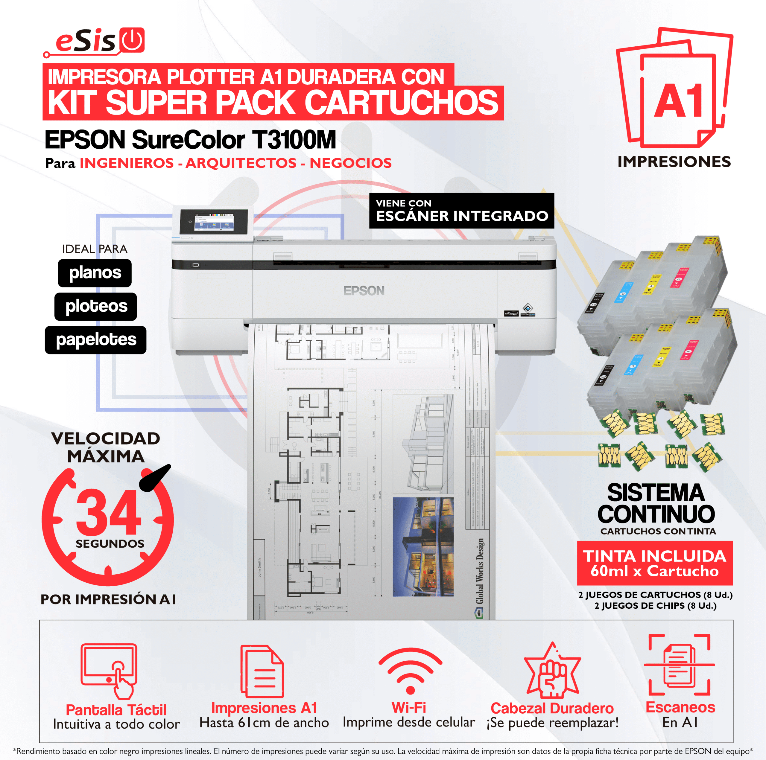 Plotter EPSON SureColor T3100M (A1) – Multifuncional + Kit Super Pack Cartuchos