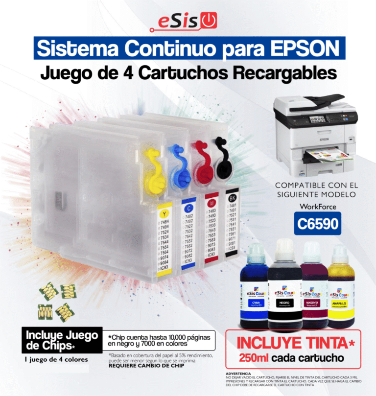 Sistema Continuo para EPSON WorkForce 6590 (Cartuchos Recargables)